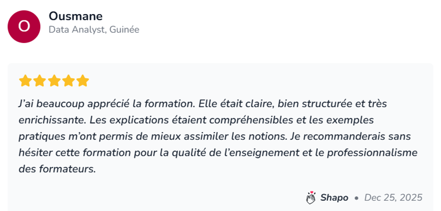 À la fin de cette formation, vous développerez un ensemble de compétences concrètes et opérationnelles qui vous permettront non seulement de produire des rapports professionnels, mais aussi d’analyser et de valoriser efficacement vos données.
